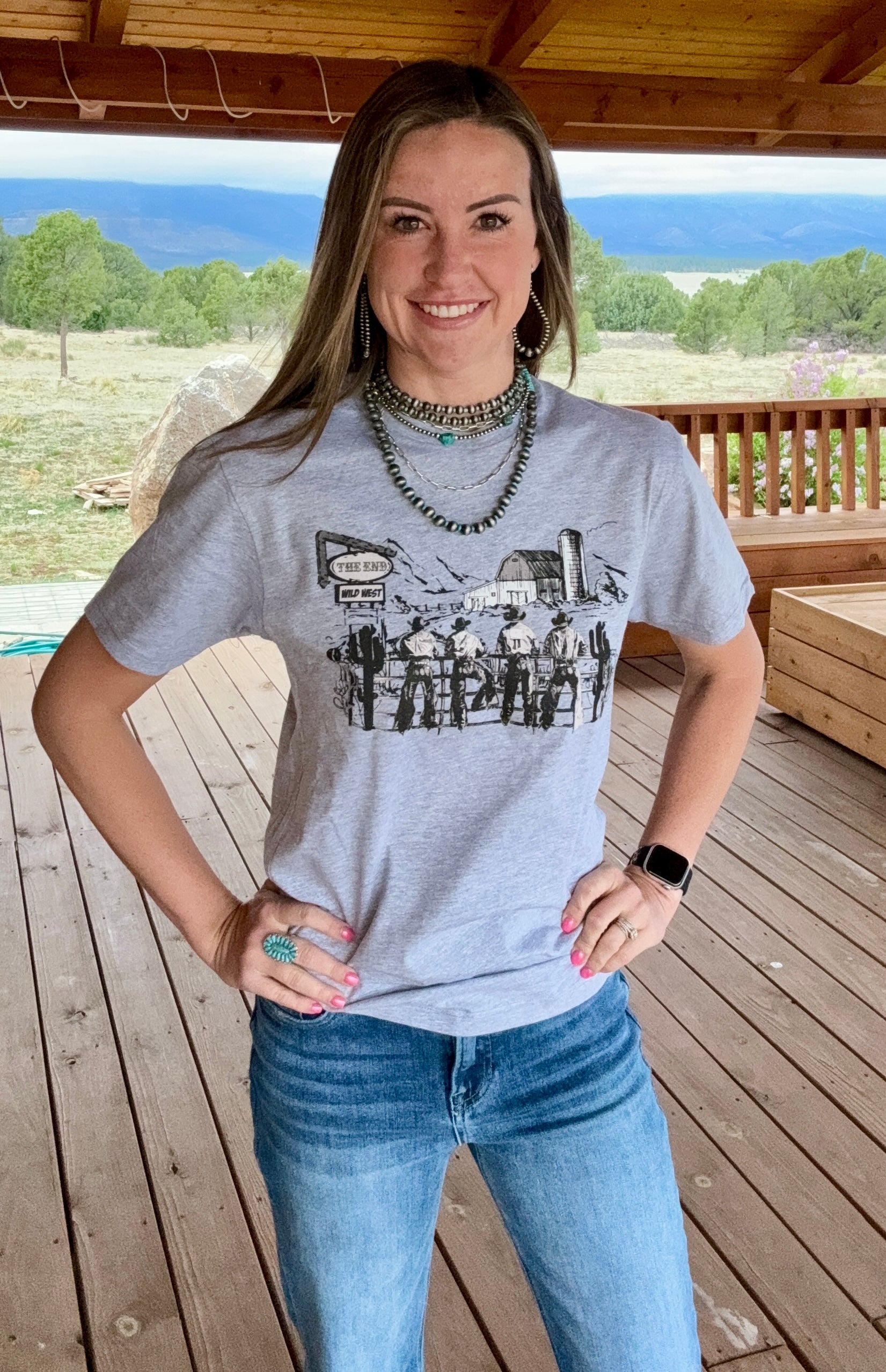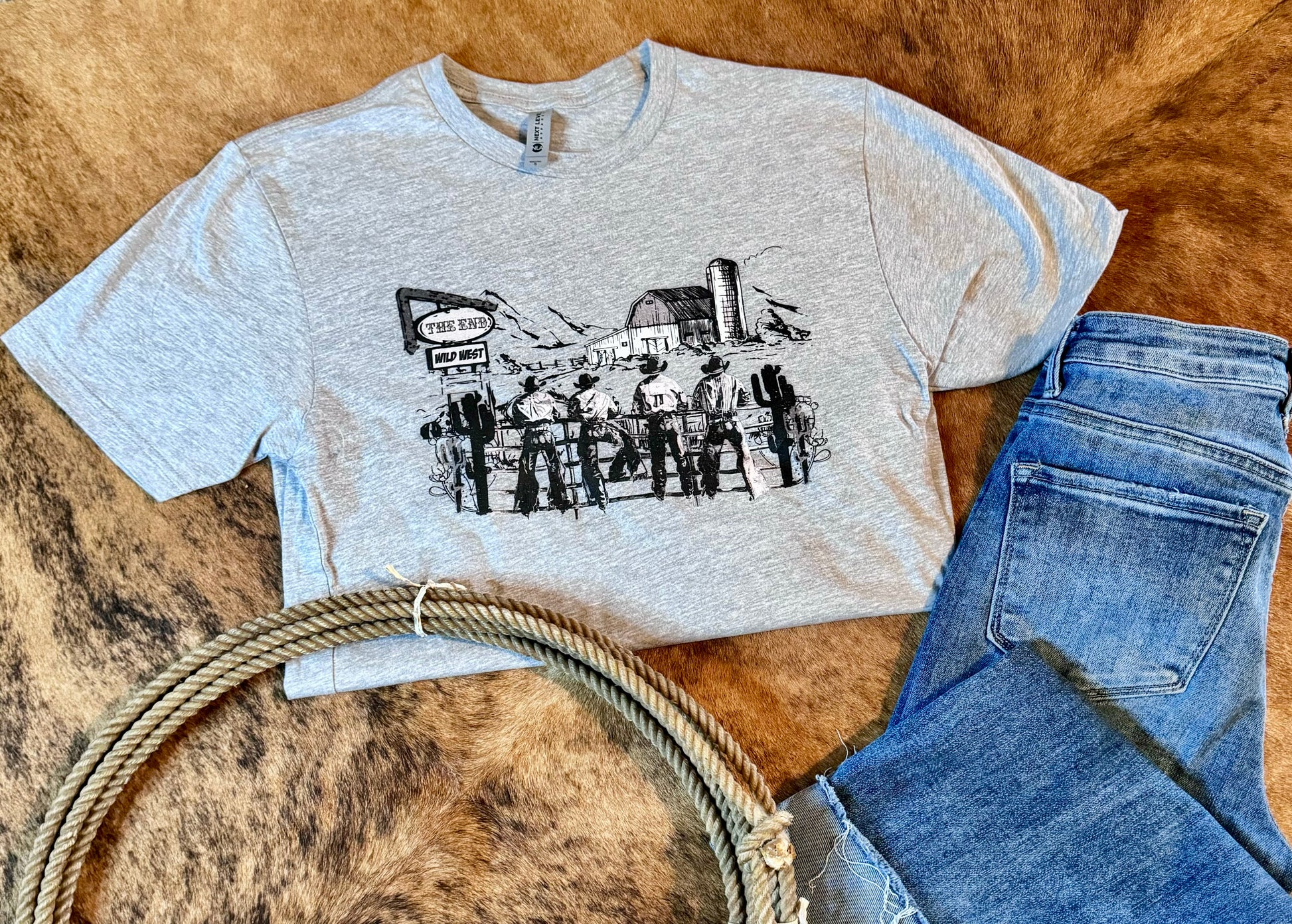 If only the fences could talk.. this simple cowboy tee is a must have. Dress it up to head out to your favorite event, or let the t-shirt speak for itself.
