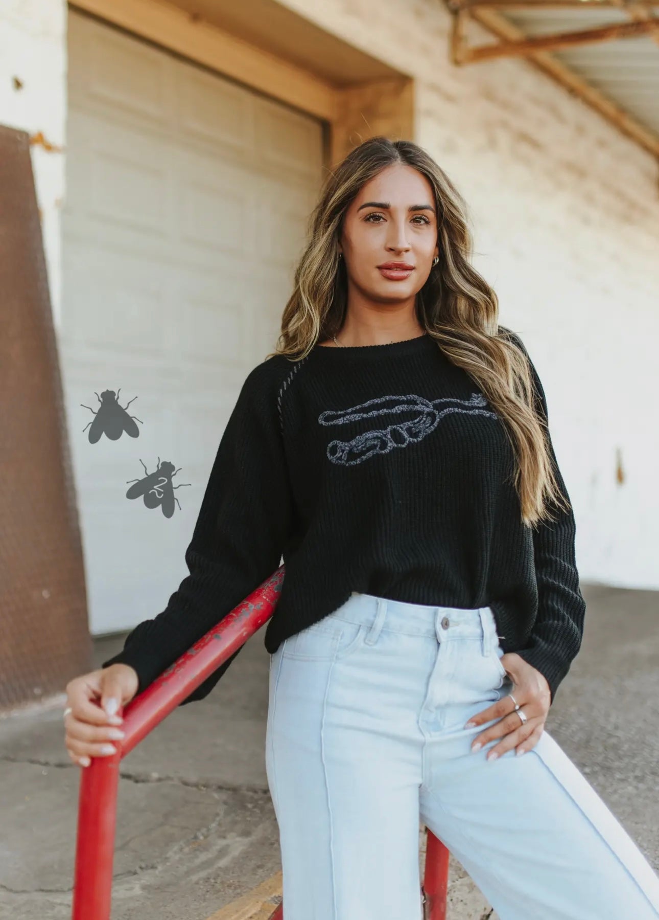 This sweater is the perfect mix of cowboy and comfy. Featuring a hand drawn design and soft knit material, you don't want to pass this one up.