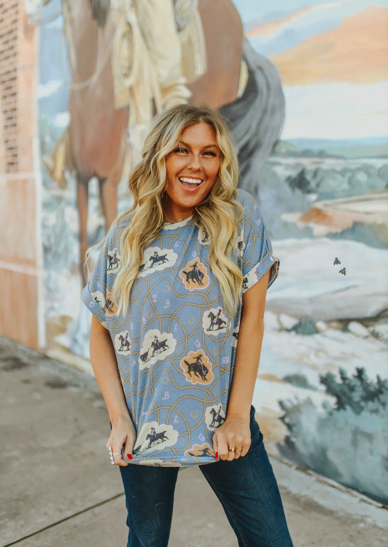 The Rancher Threads top is the perfect addition to any wardrobe. Hand drawn, unique designs on this extremely soft material. You will be sure to get noticed!